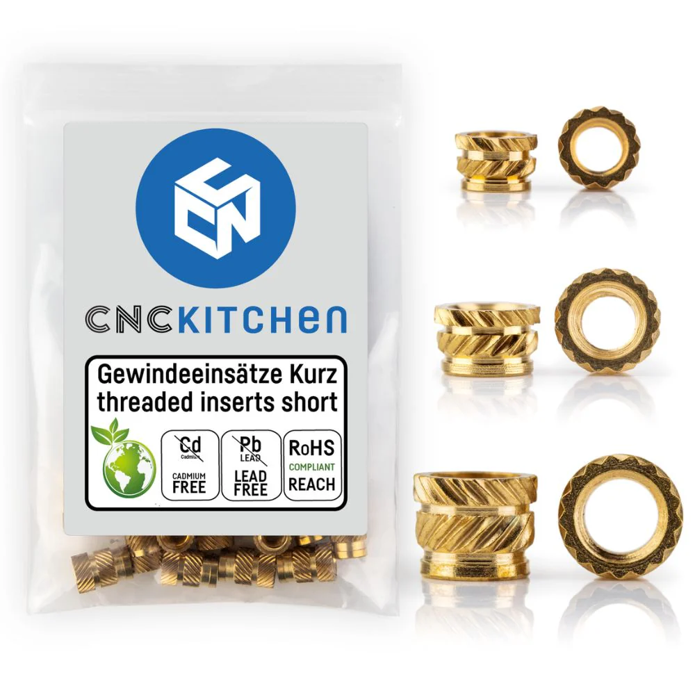 Das CNC Kitchen Gewindeeinsätze Set kurz ist die ideale Komplettlösung für alle, die regelmässig funktionale 3D-Druckteile mit stabilen Schraubverbindungen ausstatten möchten. Das Set kombiniert die gängigsten kurzen Insert-Grössen für platzkritische Anwendungen und bietet maximale Flexibilität beim Konstruieren.